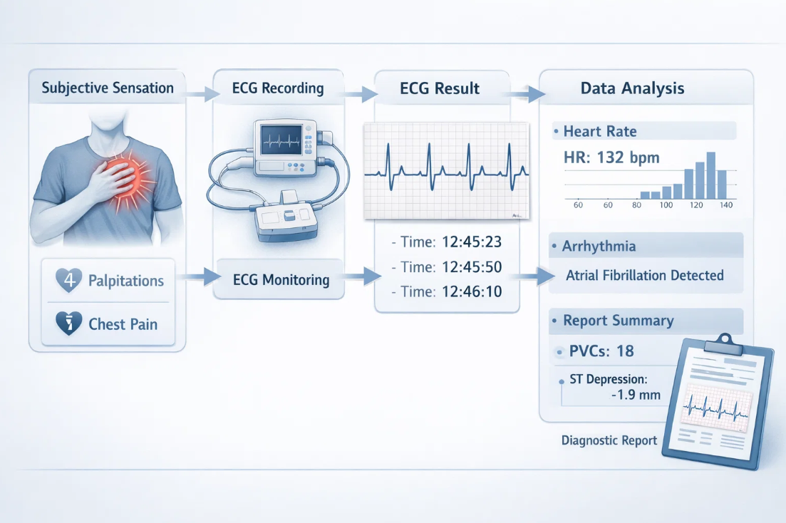 만약 가슴이 심하게 뛰는데 기록이 정상이라면, 의료진은 이를 심장 자체의 문제보다는 지각의 민감도 문제로 판단하게 됩니다.